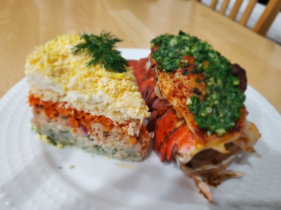 Wowwwww!! That’s a proper Christmas meal! How many slices of that salad did you eat? Eat more for us too!! That looks so good! Cheers Aleksey! Merry Christmas 🎄